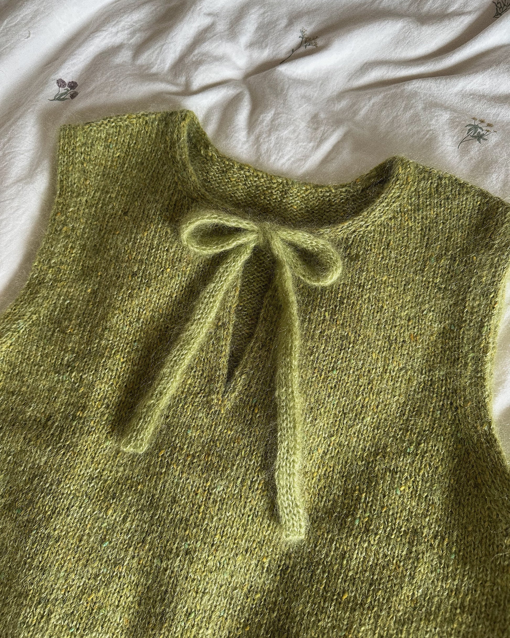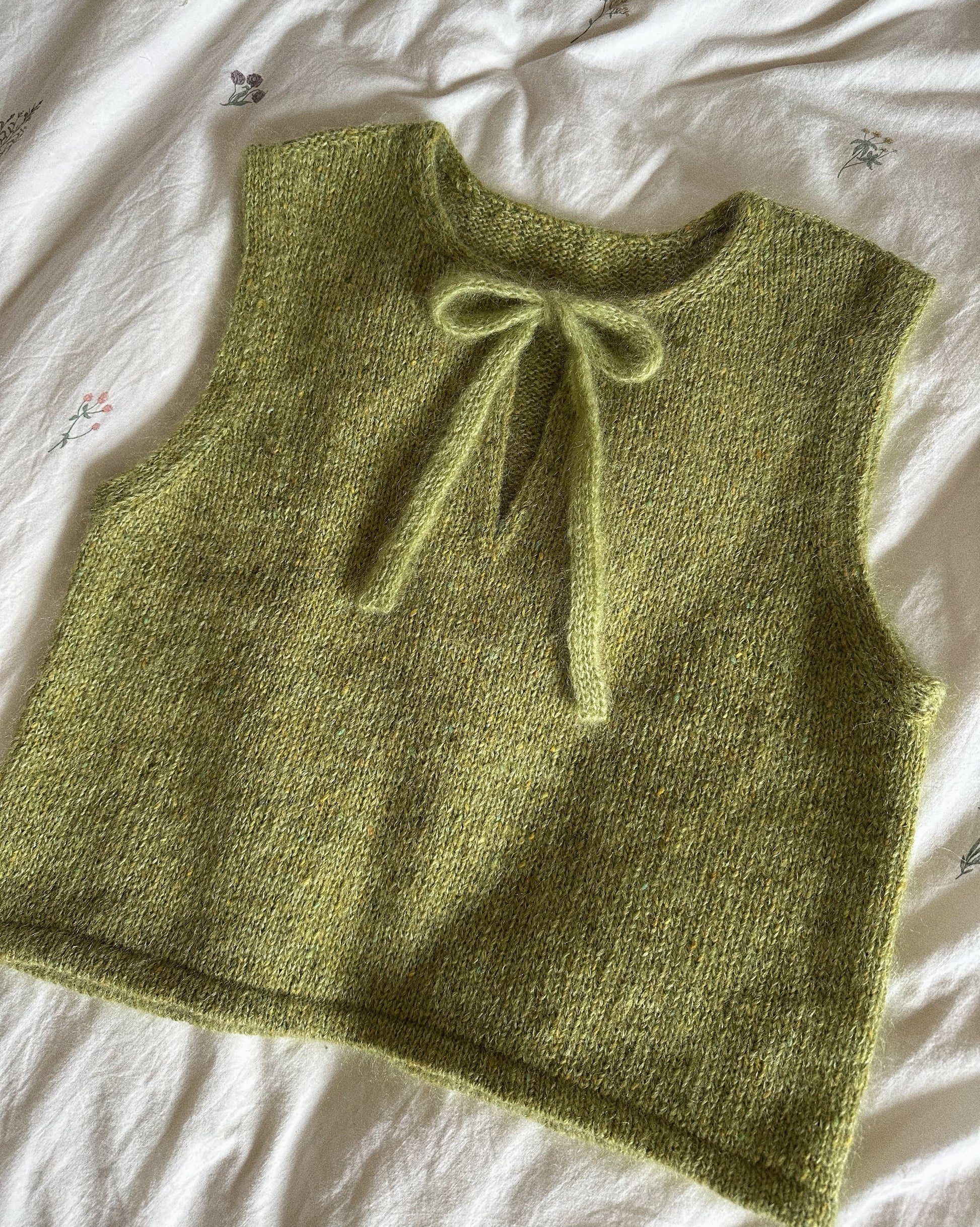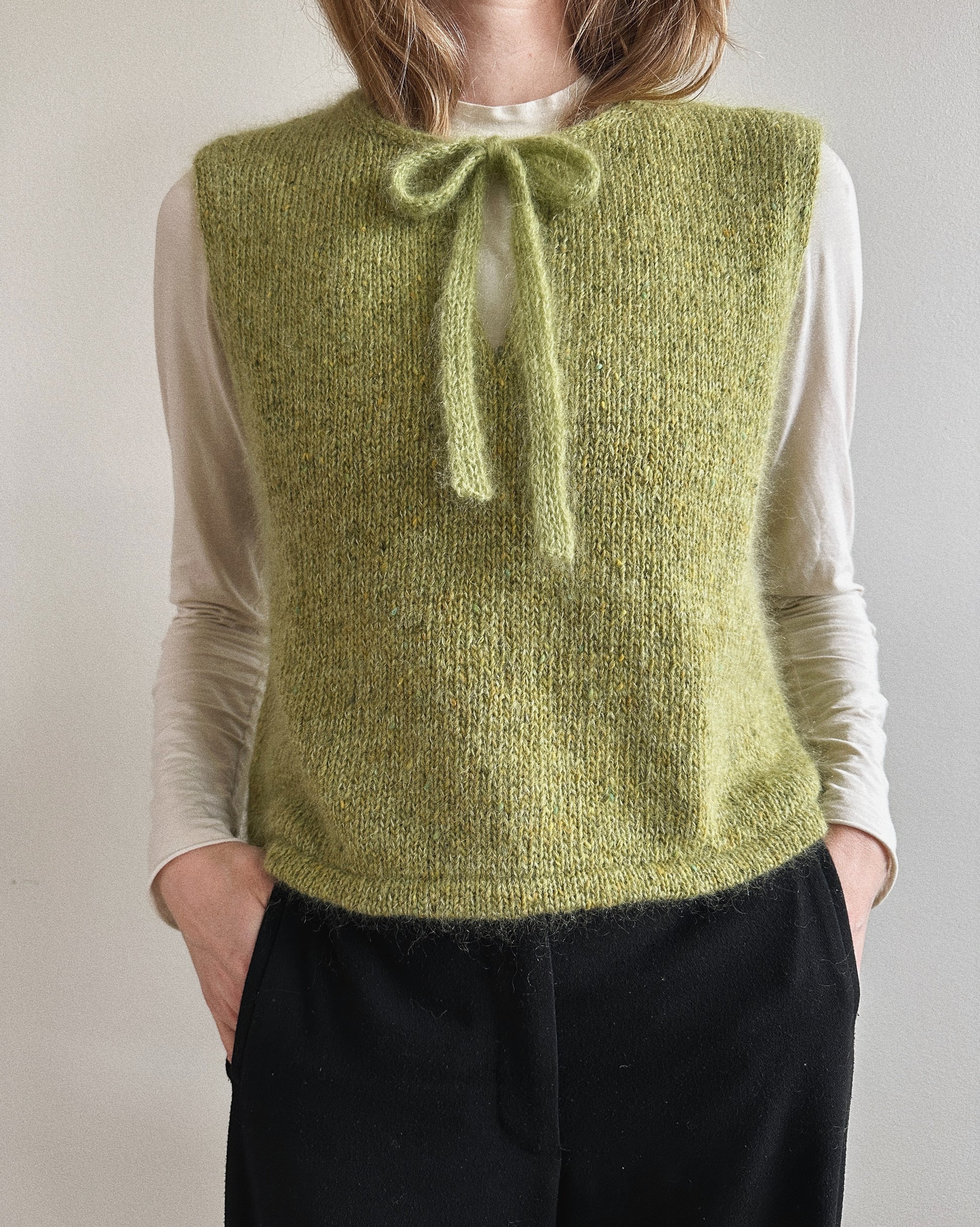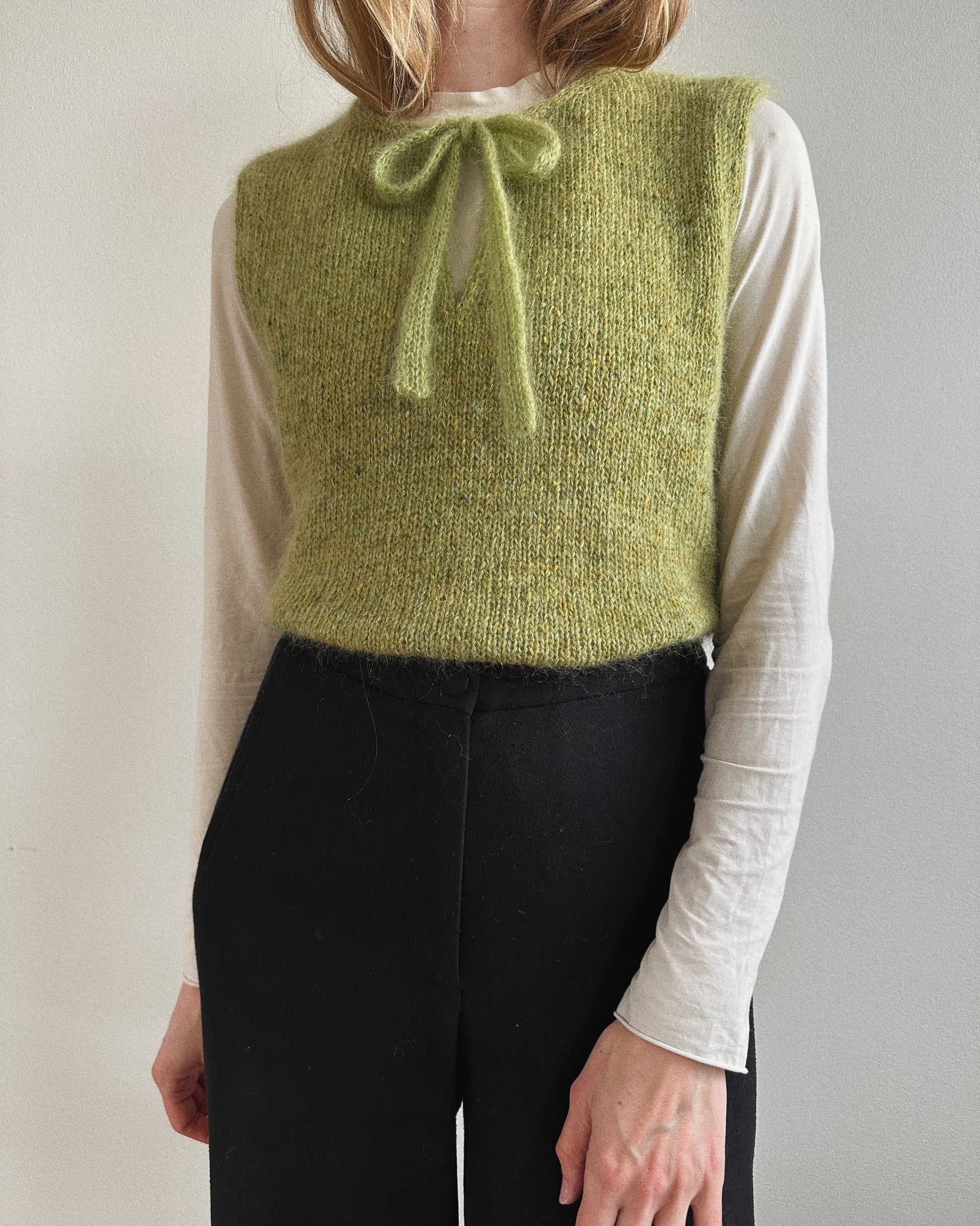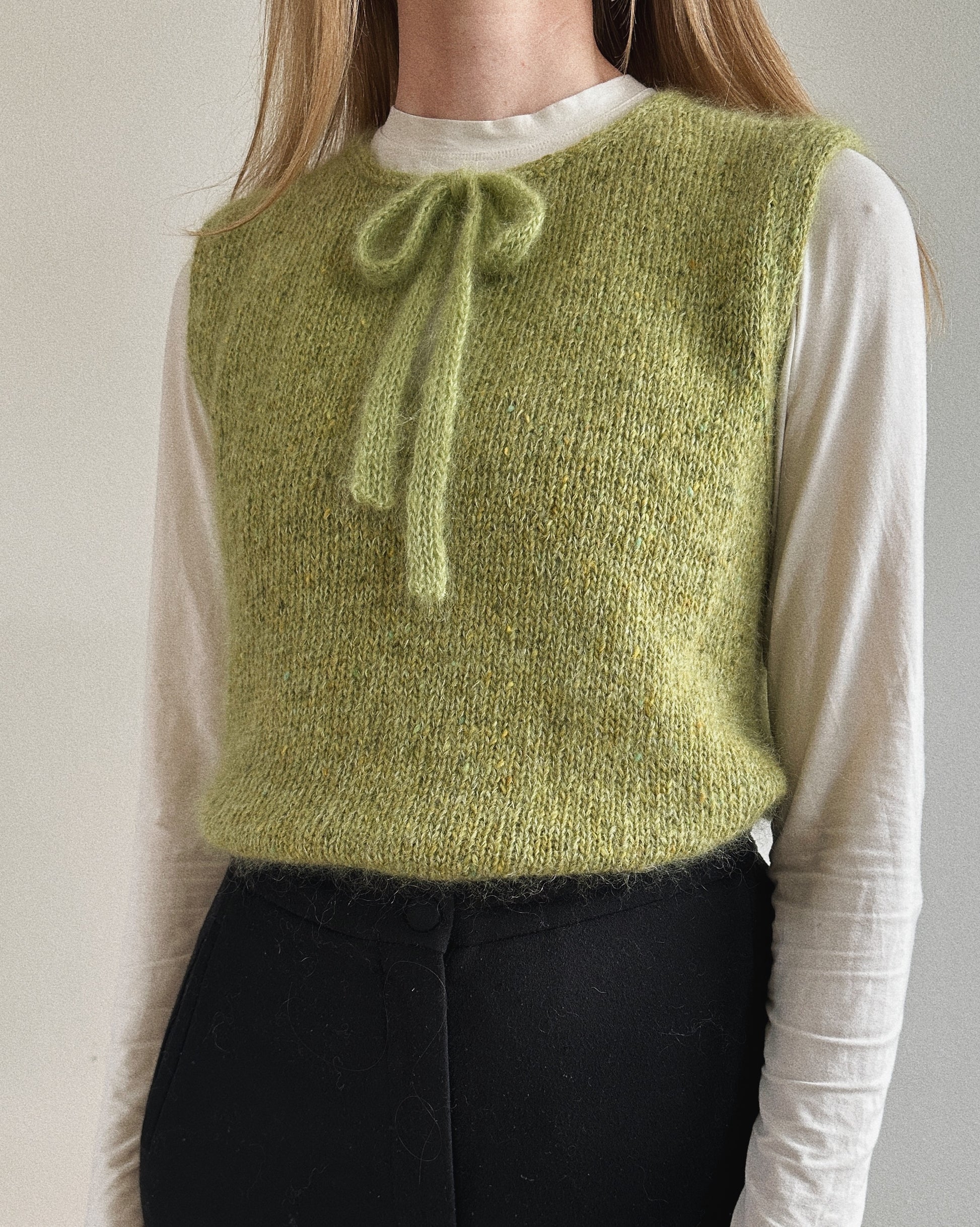 Obsidian Slipover is a V-neck slipover featuring a decorative mohair bow. The slightly oversized fit creates a beautiful contrast between the boxy silhouette and the feminine bow detail.