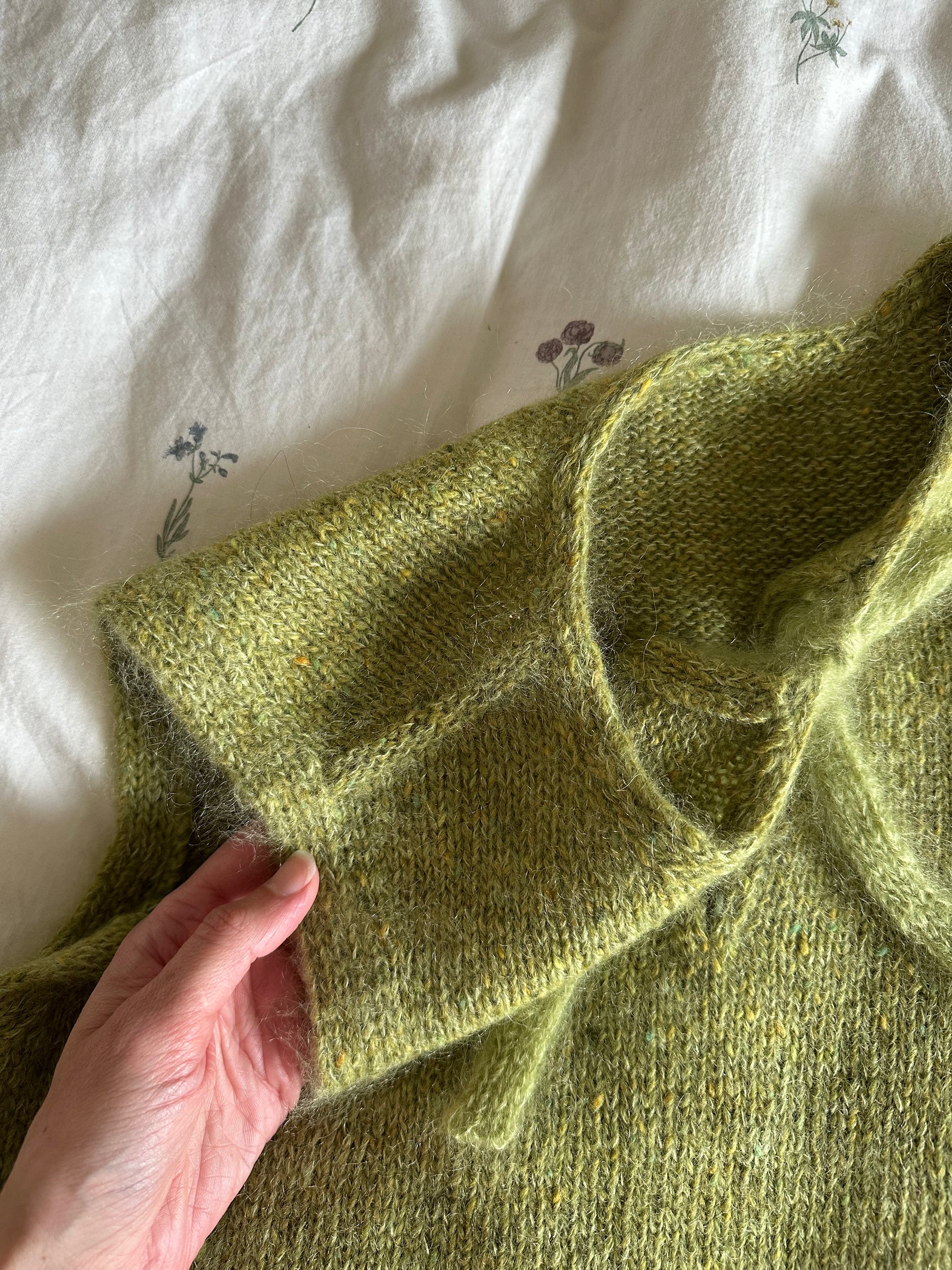 Sizes 1 (2) 3 (4) 5 (6) are intended to fit a bust measurement of approximately 80–85 (85–90) 90–95 (95–100) 100–110 (110–120) cm. The Obsidian Slipover is designed with about 10 cm of positive ease. The amount of ease gradually decreases as the bust size increases in sizes 5 and 6.